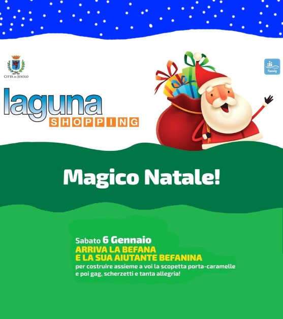 Arriva la streghetta più amata da piccoli e adulti, la Befana accompagnata dalla sua assistente Befanina, per aiutare i bambini a costruire la propria scopetta porta caramelle e poi gag, scherzetti e tanta allegria, Sabato 6 Gennaio 2024 al Laguna shopping. Non fatevela scappare!!